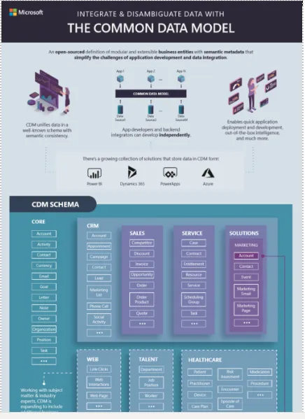 The Common Data Model (CDM) is the shared data language used by business and analytics applications to provide semantic consistency and facilitate interoperability. It is an open-sourced metadata system that includes standard entities representing commonly used concepts and activities across a variety of business and application domains. CDM provides unified data and semantics over areas including sales, service, healthcare, higher education, and more, and can be easily customized. CDM is bringing the same semantic consistency to Azure Data Lake Storage Gen2 with CDM folders, allowing organizations to leverage Artificial Intelligence and Machine Learning at a scale not previously possible.