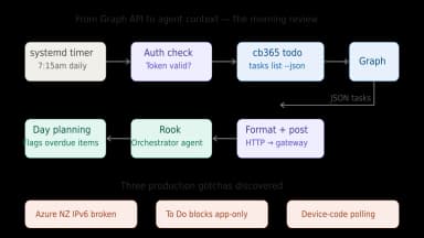 Taking cb365 from internal tool to public release meant solving the trust problem: signed binaries, Software Bill of Materials (SBOM), and a certificate authentication bug that only appeared when tested against a real Entra ID tenant.